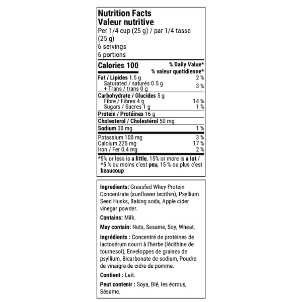 Contains naturally occurring calcium, potassium and 4 grams of psyllium fibre to alleviate constipation.